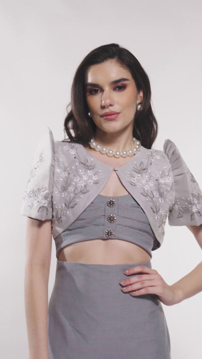 The Lily Bolero in Gray presents a more defined expression of modern Filipiniana—where tonal restraint meets quiet depth.
